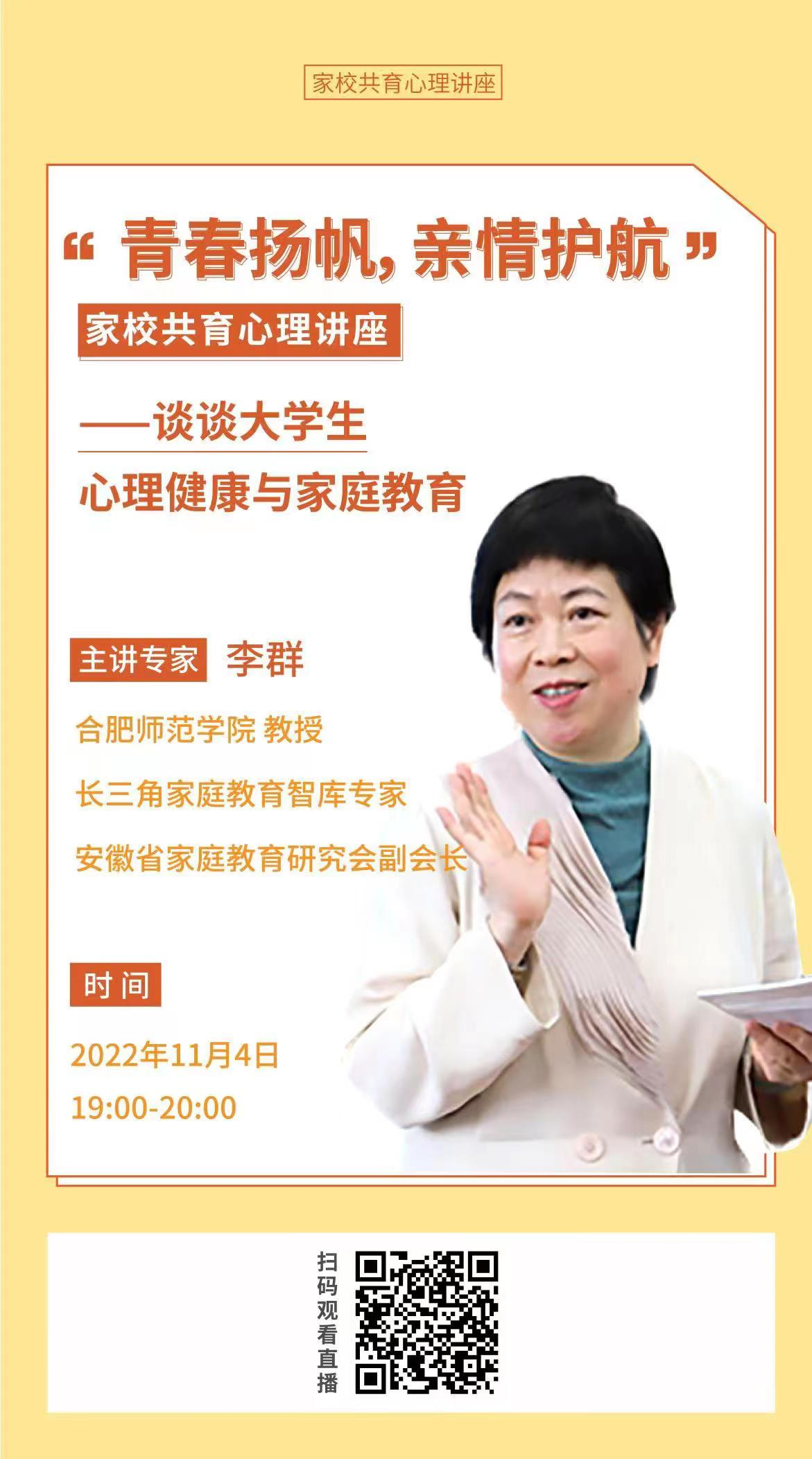 为贯彻落实安徽省教育厅《关于深化家校共育促进学生心理健康教育工作的通知》的文件精神,深入开展家校联动💂🏻♀️,发挥家庭育人重要作用🧙🏿,共同推进学生心理健康教育工作,提升学生心理健康素养,现开展“家校共育”线上心理讲座🔘。具体事项通知如下: