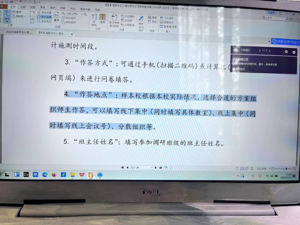 11月22日,学校学工部调研工作小组通过腾讯会议集体观看省教育厅关于“高职学生心理发展状况调研问卷调查系统操作培训”会议。会议对调研工作要求与组织实施工作作了详细说明💝,并进行了系统介绍及操作培训🍈。
