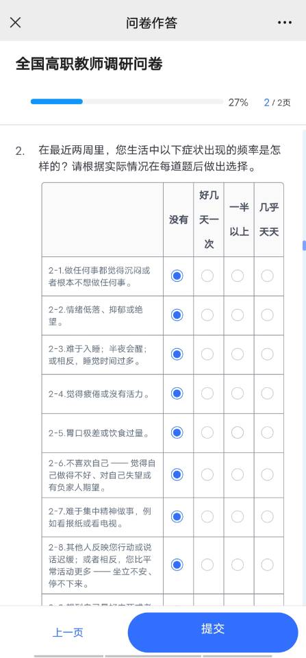 本次调研工作共对260名师生开展问卷调查,进一步了解高职学生心理发展状况及差异,准确把握高职学生心理发展的趋势,为制定相关政策、指导高职学校心理健康教育工作👮🏿、促进高职学生的心理健康成长提供了支撑数据。