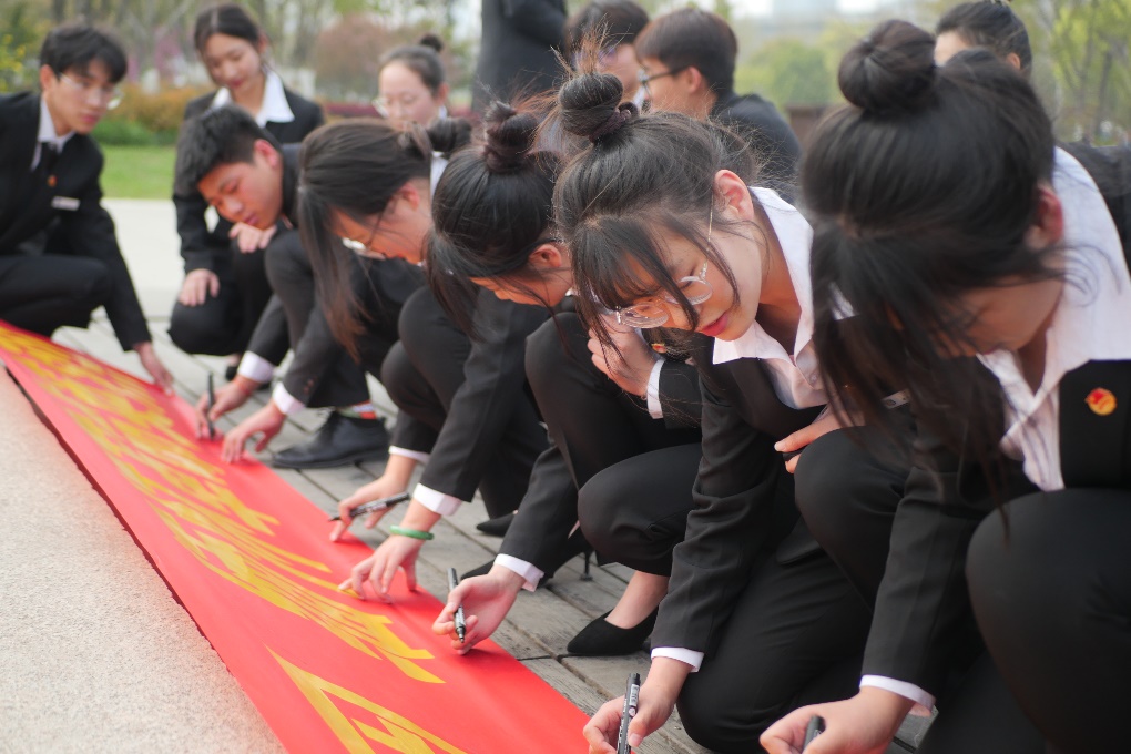 在雕像前,同学们高举右手、紧握右拳💍🦄,面向鲜红的团旗🙅🏼♂️♔,重温入团誓词,铮铮誓词回荡🌭,感受着中国共产主义青年团百年光辉历程🧑🍼🔝,激励团员青年听党话、跟党走。