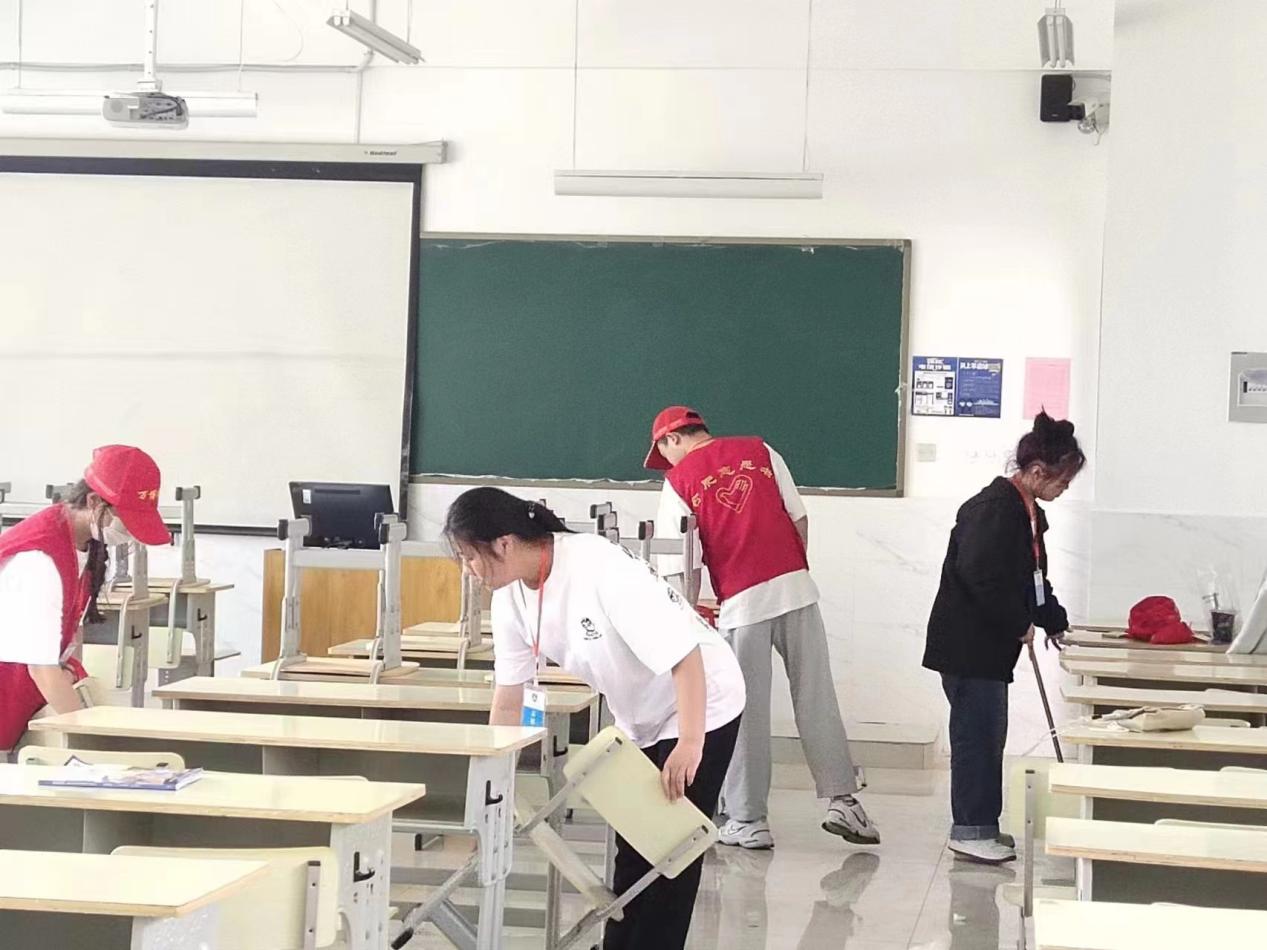活动当天,国际商务学院40多名学生志愿者手拿拖把、抹布等清洁工具,发挥不怕脏⛑️、不怕累的精神,依次从2401教室到2408教室📳,仔细清理课桌椅、窗户玻璃🦖、墙壁瓷砖等垃圾灰尘,不放过一处死角🏸。在志愿者们的齐心协力下,国际商务学院各班级的环境变得更加干净整洁🎵,志愿者们用实际行动为身边的同学们营造了良好的学习环境。
