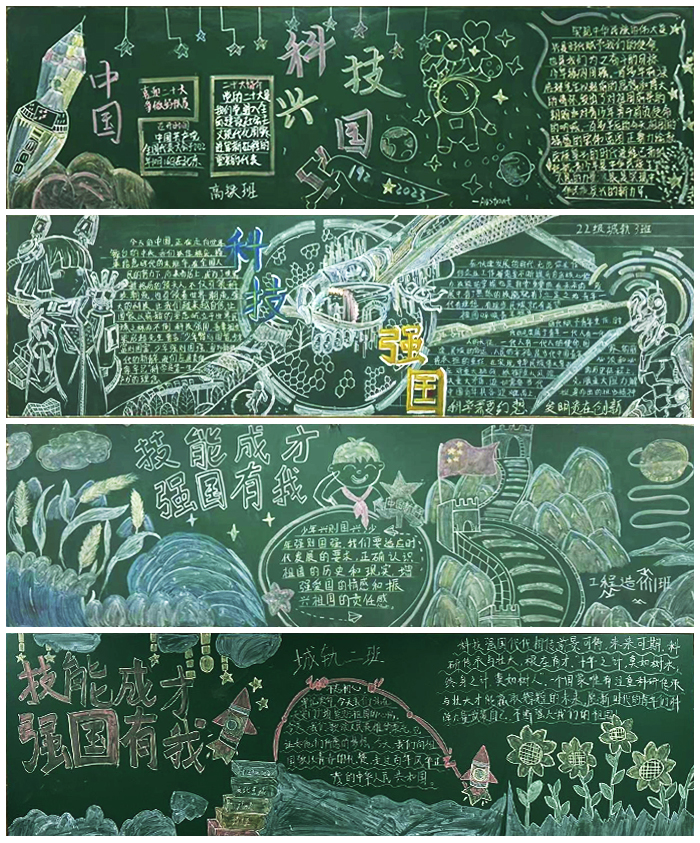 为深入学习贯彻党的二十大精神,落实立德树人根本任务,交通工程学院精心组织各班级开展了“技能成才👨🏿🎓,强国有我”主题黑板报活动🦮。