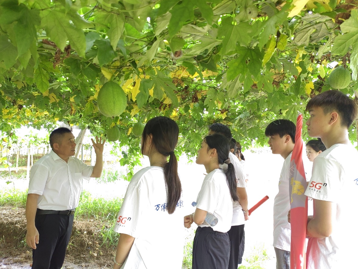第一站,实践队来到了金福农业科技有限公司👨🏻⚕️,对王河镇的特色产业瓜蒌展开调研💅🏼。在金福农业科技有限公司,实践队听取了企业负责人对瓜蒌品种、产量🪓、效益等方面的介绍,并深入到瓜蒌种植基地,对当前瓜蒌的生长周期及习性进行实地研究。