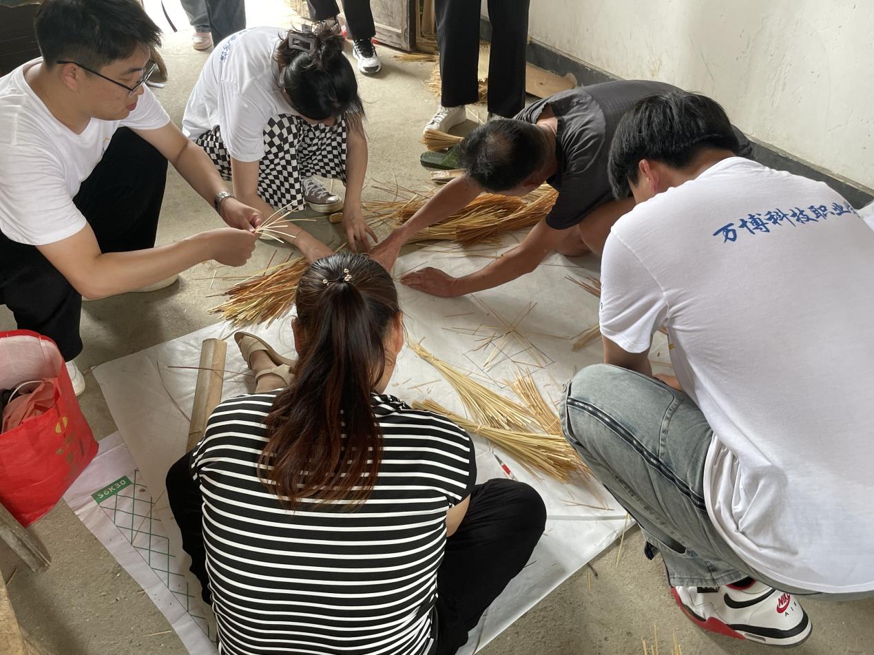 第二站,实践队赶赴安徽省非物质文化遗产—唐氏舒席👨🏼🍼。队员们参观了舒席的制作工艺,学习并了解了舒席的发展历史。在老艺人手把手的指导下,队员们纷纷自己动手尝试竹篾编制👩🔧,感受指尖上的精彩。