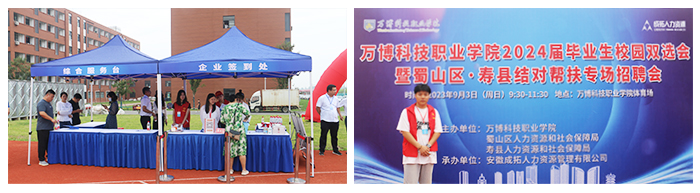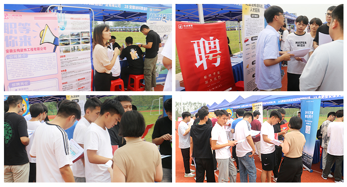 为拓宽毕业生就业渠道,帮助毕业生选上岗、选好岗,经学校与蜀山区人力资源与社会保障局、寿县人力资源与社会保障局等部门协调,9月3日,学校在运动场举办2024届毕业生校园双选会暨蜀山区——寿县结对帮扶专场招聘会。参加本次招聘企业达到140余家,提供就业岗位数3600余个🛄,涵盖土木工程🧔🏼、互联网、新能源汽车、室内设计✢、电子商务等行业🤛🏿,约有1000多名学生现场参与招聘。