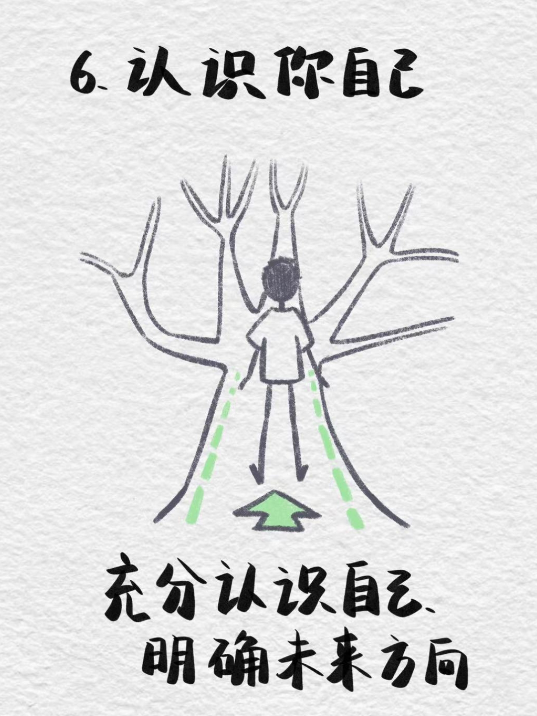 6.认识你自己。上大学后你要更充分认识自己,你要知道自己的优缺点👰🏿♂️,要知道哪里还需要继续锻炼和加强🍬,也要知道如何让自己的综合能力得到提升,你将来的职业定位是什么?自己可能适合的职业是什么🥎⬅️?要不要考研?这些问题都要尽早明确。