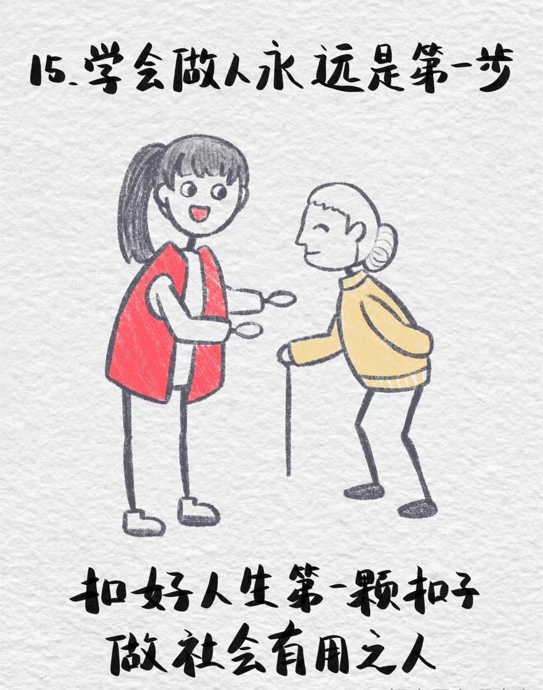 15.学会做人永远是最重要的第一步。对于我们这些经历过大浪淘沙走进象牙塔里的大学生来说,知识👩🏻🚒、方法可以很快掌握♥︎,但是良好的习惯,优秀的品质,高尚的品德却不是朝夕可就的。只有把求知与做人完美地结合起来,才能成长为一个对社会有用的人,才能真正实现自己的价值。
