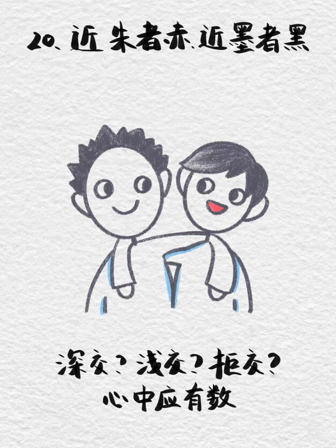 20.近朱者赤♌️👩🏻🌾,近墨者黑。交友一定要有原则,谁该深交,谁该浅交,谁该拒交,要做到心中有数,尽量找些优秀的人做你的朋友将会受益匪浅🧙🏻♀️。你们交友的广度也应适当💂♀️🚴🏻♂️,圈子太窄,疏远了可交的益友,有碍正常交往,范围太大,必将分散自己的精力,影响学习🧑🏽🍼。