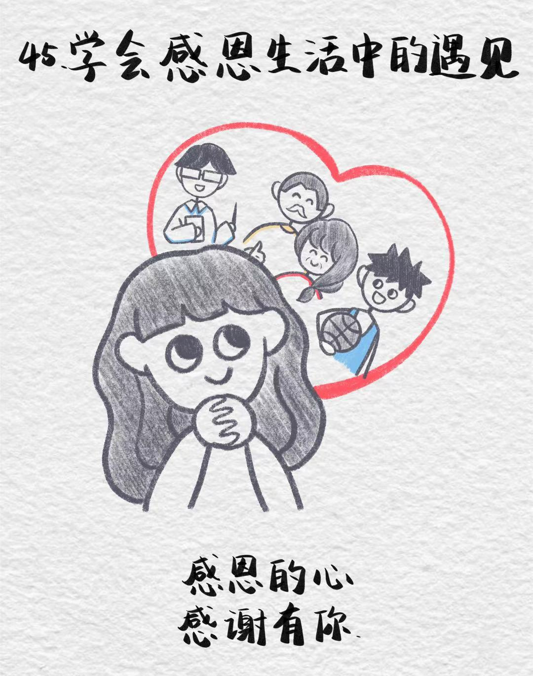 45.学会感恩生活中的每次遇见。你遇见的舍友、同学🙅♀️🧑🏿🏫、社团伙伴📼🐈、老师都值得你去感恩,感恩他们出现在你的世界里,感恩他们对你的帮助🤽🏿;感恩你的父母、帮助过你的亲戚朋友👨🏻🦯,或者是帮助过你的陌生人,带着感恩之心生活👩🦱,你的心灵会更纯净𓀔,更安心👨🏽⚖️,更有力量感。