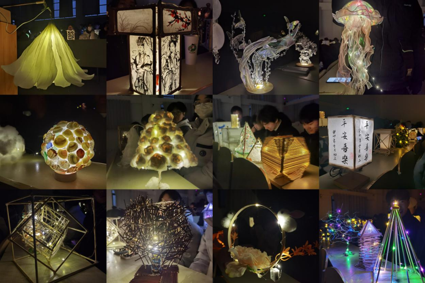 同学们通过传统灯饰、现代灯饰等形式,纷纷展示了自己通过《设计构成基础》课程所学知识完成的综合材料设计作品🦹♂️,展现了同学们对平面构成、色彩构成、立体构成的综合运用能力👨🦼。作品在传承中国文化民俗的同时👩🏼🦳,立足专业特点,创新演绎绘画、书法、剪纸、铁艺、木雕等传统中国元素,展现中华传统文化的独特魅力。