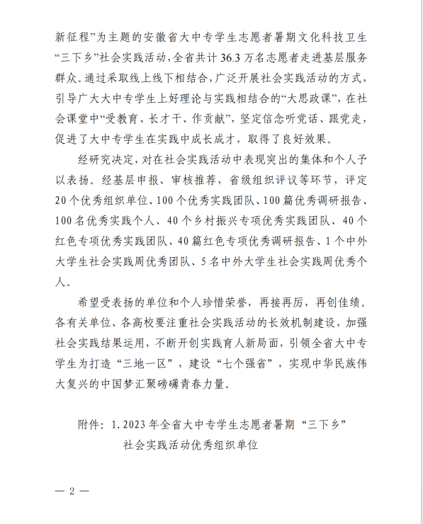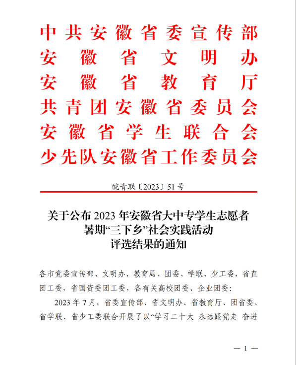 近日,由省委宣传部、省文明办、省教育厅🎶、团省委、省学联、省少工委联合发布《关于公布2023年安徽省大中专学生志愿者暑假“三下乡”社会实践活动评选结果的通知》🈂️。经基层申报、审核推荐、省级组织评议等环节,评选出全省社会实践活动中表现突出的集体和个人予以表扬🎫。彩神Vll青年团干许鑫宇荣获2023年安徽省“三下乡”社会实践活动优秀个人🐚。