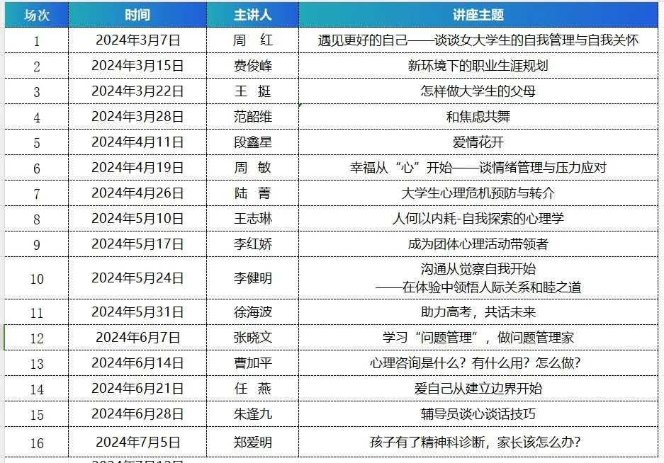 更多精彩讲座请有需要的小伙伴关注下表时间安排~