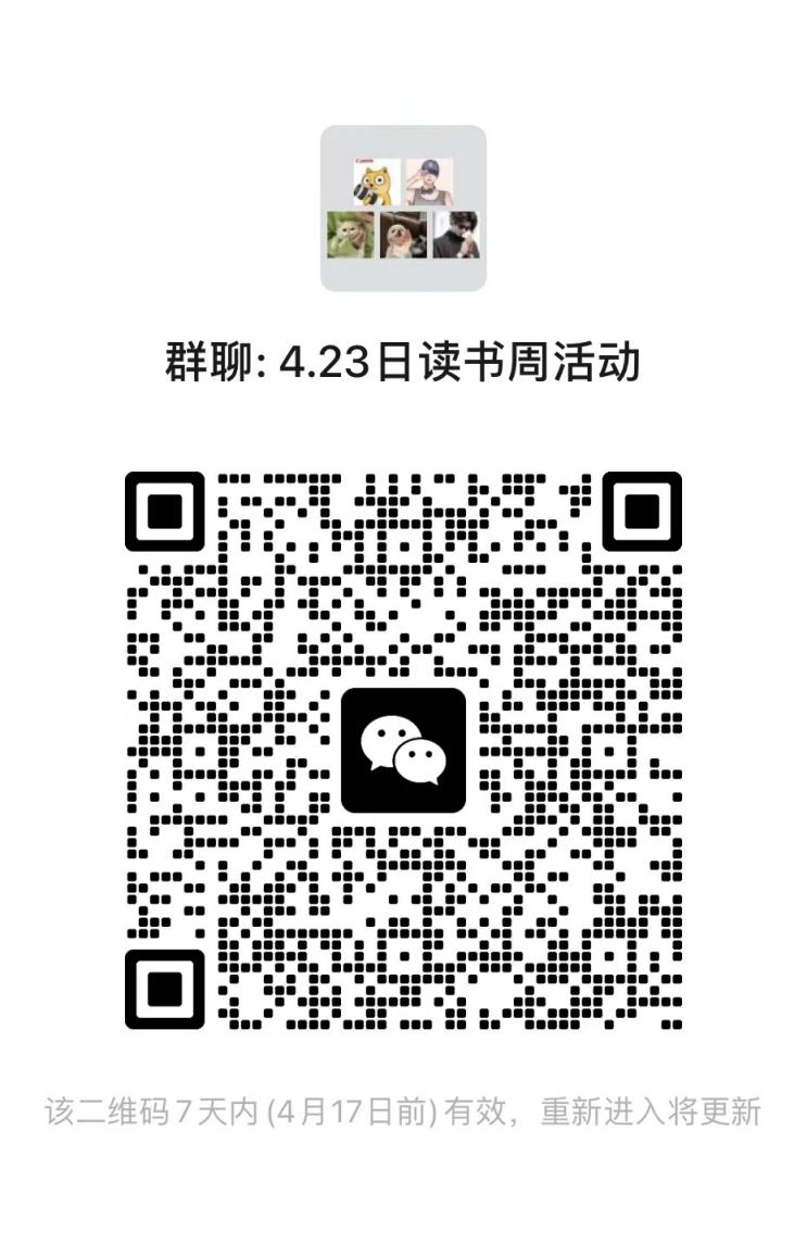 此次读书日系列活动二维码(七天内有效,七天后联系活动组委会💭:13155152696)