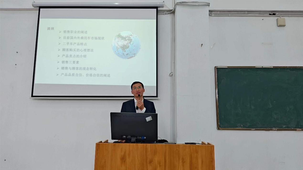 本次讲座✥,陆淑林重点围绕二手车产品特点🥃、国内外二手乘用车市场现状、二手车销售要素、二手车销售与顾客的观念转化等八大主题,系统讲授二手车销售岗位的就业特点及方向🥚。他立足安徽二手车市场🧙🏿♂️,结合当前市场数据和真实案例,分析了二手车市场的广阔前景和发展趋势,并就二手车销售关键因素及市场销售策略作详细教授👩🔬。其深厚渊博的专业知识♑️、深入浅出的示例阐述给大家留下了深刻印象🥕。