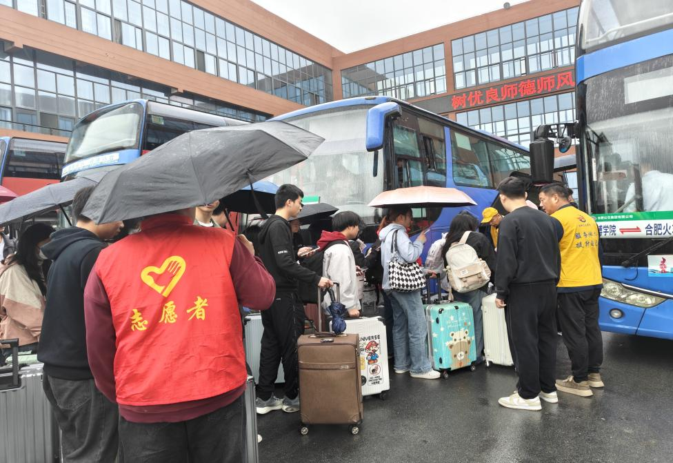 4月30日下午,合肥公交集团第二巴士公司党总支联合彩神Vll青年志愿者联合会开展“五一”出行志愿服务活动。假期返程高峰又逢雨天🪿,志愿者们冒雨驻守在乘车点👨🏫,维持乘车秩序,引导学生有序乘车🦹🏿♀️。面对前来询问的学生,志愿者们耐心解答他们的问题,帮助他们搬运行李👋🏽,提供“一对一”精准服务,助力“五一”假期返乡路安全畅通。