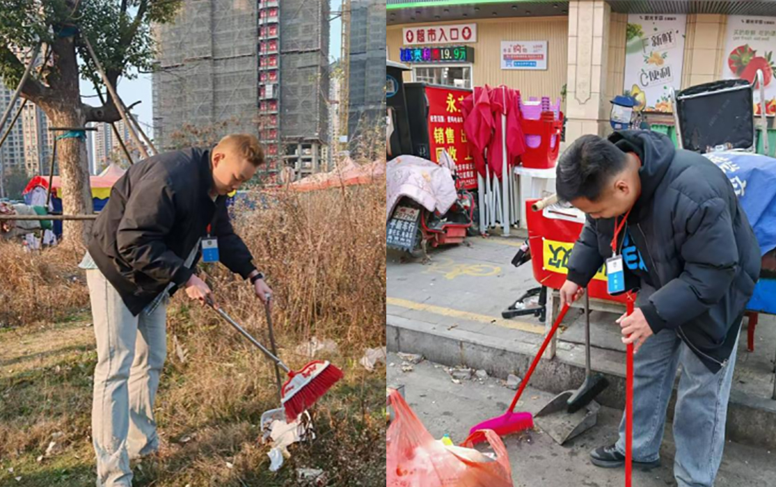 活动当天🏂🏻,志愿者们早早来到阳光半岛社区😵💫,他们手持扫帚、拖把、抹布等清洁工具⚱️,满怀热情地投入到打扫工作中。志愿者们分工明确,有的清扫社区道路,将落叶、烟头、纸屑等垃圾清理干净🏃🏻➡️;有的擦拭小区内的长椅、健身器材和宣传栏💶,使其焕然一新;还有的深入楼道☺️,清理墙壁上的小广告,打扫楼梯间卫生,不放过任何一个卫生死角。尽管天气寒冷,但志愿者们热情不减,干劲十足🦁,他们忙碌的身影穿梭在社区的各个角落🙂↔️,成为了一道亮丽的风景线👨👦👦。