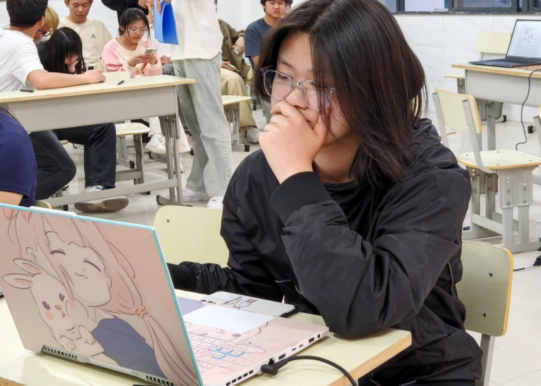 比赛中,参赛选手直面AI系统设计的复杂棋路,在秒倒计时压力下迅速决策🗿,极大考验了逻辑推理与临场应变能力。面对AI的缜密计算,选手们时而凝神沉思,时而果断落子,策略交锋中展现出对五子棋传统战术的深刻理解与创新突破。现场人机对弈的每一步都牵动观众心弦💧,当选手巧妙化解AI的“陷阱”或反制突袭时,观众席频频爆发掌声与惊叹声。尤其在决胜局中,李欣怡同学绝地反击⚃,逆转AI预设棋局🤟🏽,将全场氛围推向高潮。