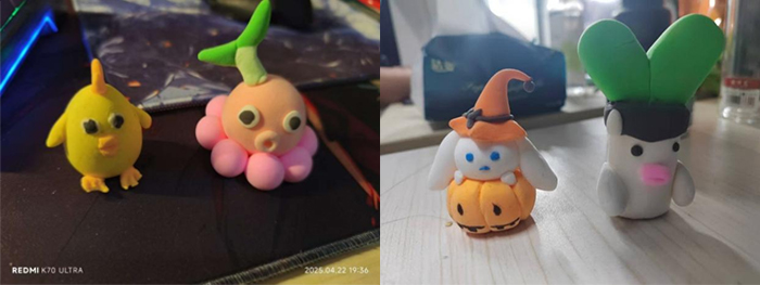 学生们的作品充分体现出对非遗泥塑的理解与创新🦈:有的以“祥兽瑞禽”为题材,塑造吉祥寓意的传统形象;有的将当代流行元素融入传统技法,创造出融合漫画风格与传统造型的趣味作品🕴;更有学生尝试将泥塑小件设计为室内软装装饰模型⛹🏼♂️,拓展了非遗技艺在现代设计语境中的应用边界。