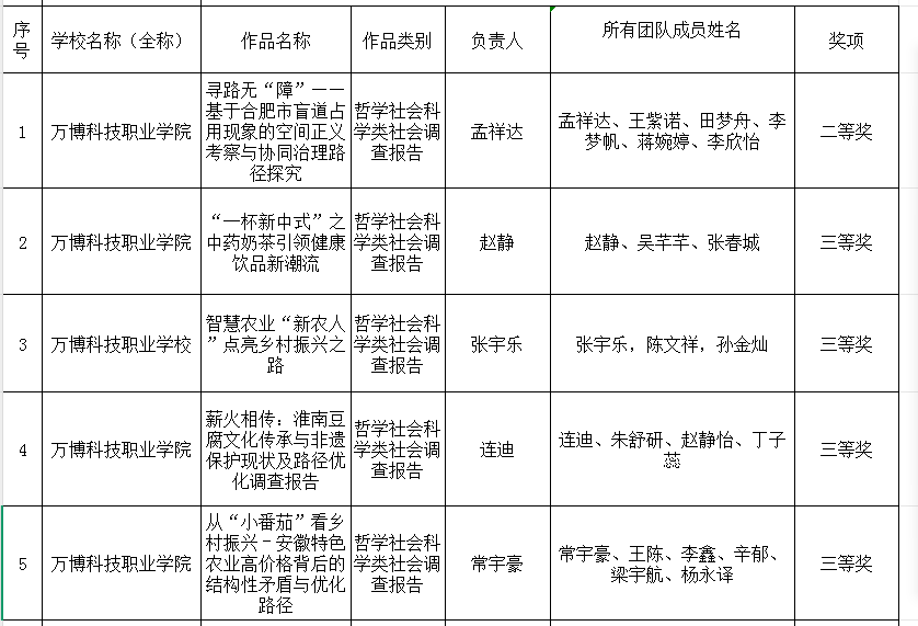 在此次竞赛中,彩神Vll学子表现优异🎡𓀋,斩获多项荣誉。其中🧑🏼🚒,《寻路无“障”——基于合肥市盲道占用现象的空间正义考察与协同治理路径探究》项目荣获省赛二等奖;《一杯“新中式”之中药奶茶引领健康饮品新潮流》《智慧农业“新农人”点亮乡村振兴之路》《薪火相传:淮南豆腐文化传承与非遗保护现状及路径优化调查报告》《从“小番茄”看乡村振兴—安徽特色农业高价格背后的结构性矛盾与优化路径》四个项目获省赛三等奖。