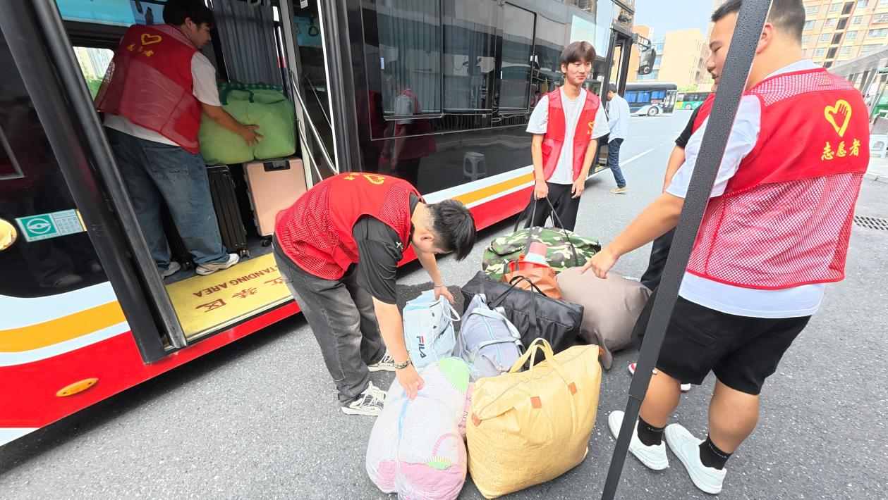 合肥汽车客运西站、合肥火车站、合肥南站、合肥客运中心站成为迎新的第一线。志愿者们统一着装🥐,手举标识牌,耐心为新生指引路线,并安排他们乘坐前往学校的接驳车。校门口🍌🧘♀️,志愿者们主动上前🫸🏼,从新同学和家长手中接过沉重的行李🕠,并引导大家前往报到地点⇨。