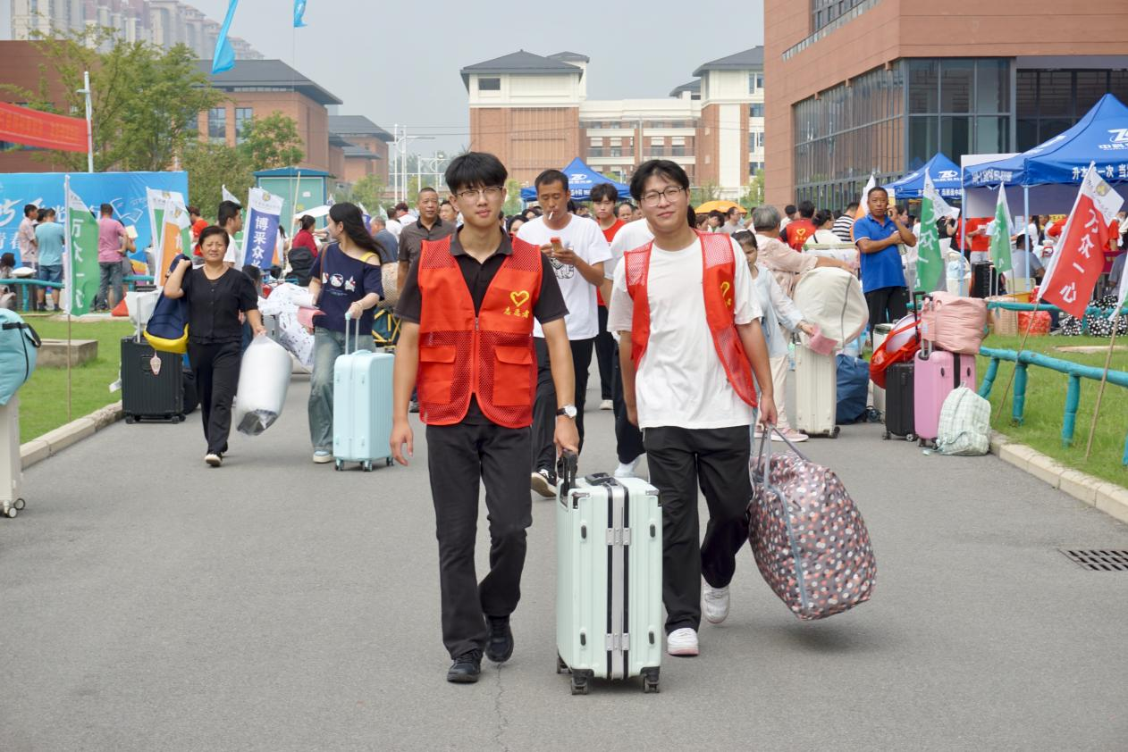 校内各报到区域里,志愿者们分工明确、协作默契,耐心协助新生完成信息登记、费用缴纳、材料领取等报到流程♚。面对不熟悉线上操作的同学,他们一对一细致指导💂♂️,用专业和耐心保障报到工作高效☄️、顺畅🙋♀️。
