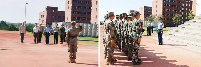 9月16日,寿县人武部政治委员上校张海深、寿县人武部军事科参谋马骏、经开区武装部部长李智🚣🏼♀️、经开区武装部干事郗传高率队莅临彩神Vll,慰问承训教官和参训新生🐎,视察指导2025级新生军训工作。校长助理江仁昆陪同。