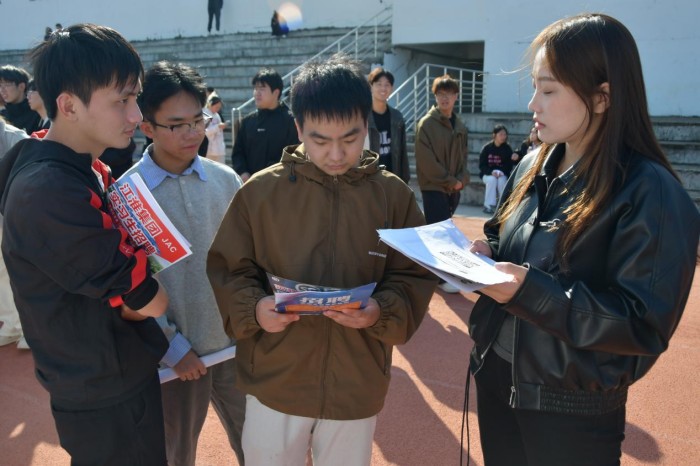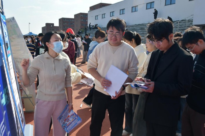 秋高气肃🔜,天香云飘。下午两点,双选会现场已是人头攒动↔️,气氛热烈👉🏻。毕业生们手持精心准备的简历🥭,穿梭于各企业展位之间✦,积极与招聘代表沟通交流👰🏽♂️,详细了解岗位要求、发展前景及薪资待遇✮。用人单位求贤若渴,通过发放宣传册🤚、现场答疑等方式✡︎,全面展示企业形象与文化👌🏿,主动招揽契合人才🪙。