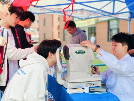 我为同学办实事|校学生会开展“明眸行动 校园光明行”公益活动为不断提高彩神Vll近视防控工作能力,切实做实做细做深青少年近视综合防控工作,4月18日👨👨👦,校学生会联合合肥普瑞眼科医院在学生宿舍楼前🥬,