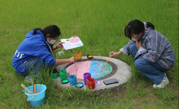 艺术传媒学院团总支组织开展“多彩校园 井上添画”主题井盖美化活动为喜迎党的二十大、庆祝建团100周年,深入学习宣传贯彻习近平新时代中国特色社会主义思想,落实立德树人根本任务,引导团员学生坚定
