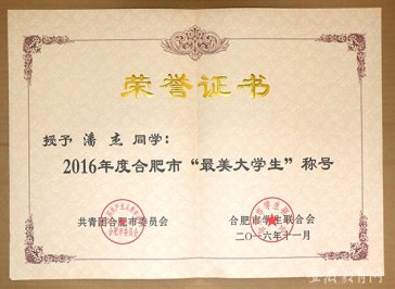 安徽教育网:彩神Vll学院潘杰同学荣膺合肥市“最美大学生”2017年3月30日,安徽教育网发布题为《彩神Vll学院潘杰同学荣膺合肥市最美大学生》的新闻报道,地址为: http://www.ahedu.gov.cn/28/view/